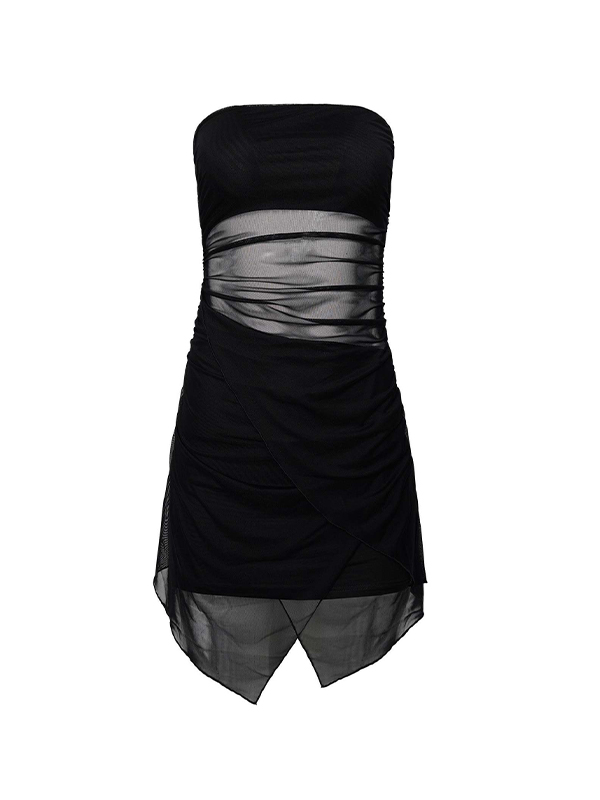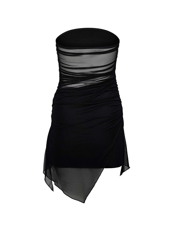 Rückenfreies Mesh-Minikleid mit unregelmäßigem Saum