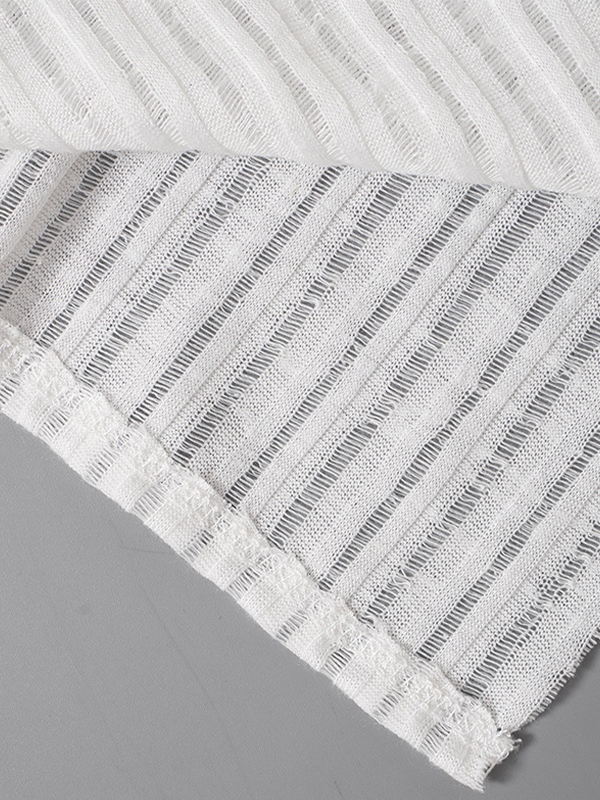 Schulterfreies Patchwork-Langarm-T-Shirt mit unregelmäßigem Saum