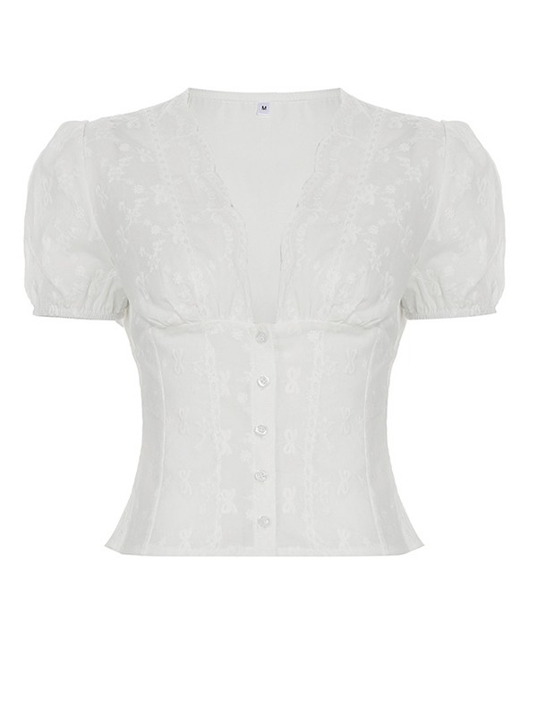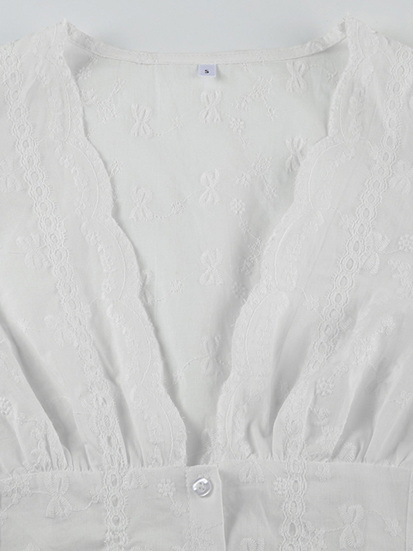T-Shirt mit V-Ausschnitt und kurzen Ärmeln aus Spitze