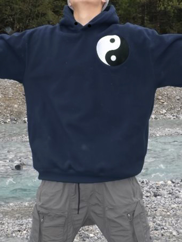 Übergroßer Kapuzenpullover mit Yin- und Yang-Stickereidruck für Herren Menge