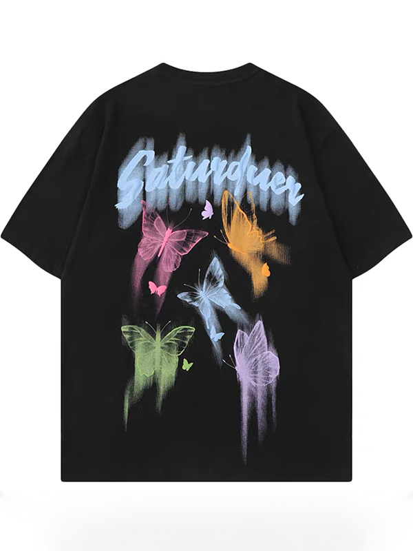 Übergroßes Kurzarm-T-Shirt mit Vintage-Graffiti-Schmetterling