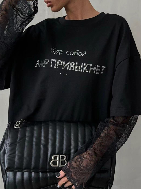 Übergroßes Langarm-T-Shirt mit Schriftzug-Print