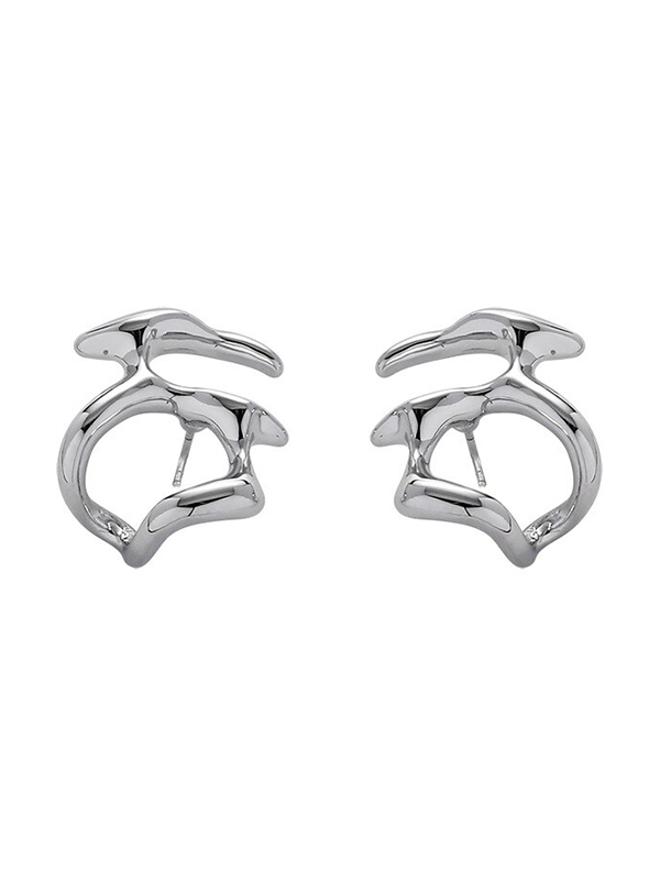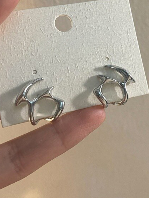 Unregelmäßiger Ohrstecker aus flüssigem Metall mit Ausschnitten