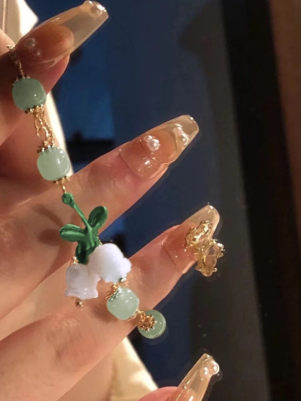 Verstellbares Gliederarmband mit Blumenanhänger aus Jadeimitat