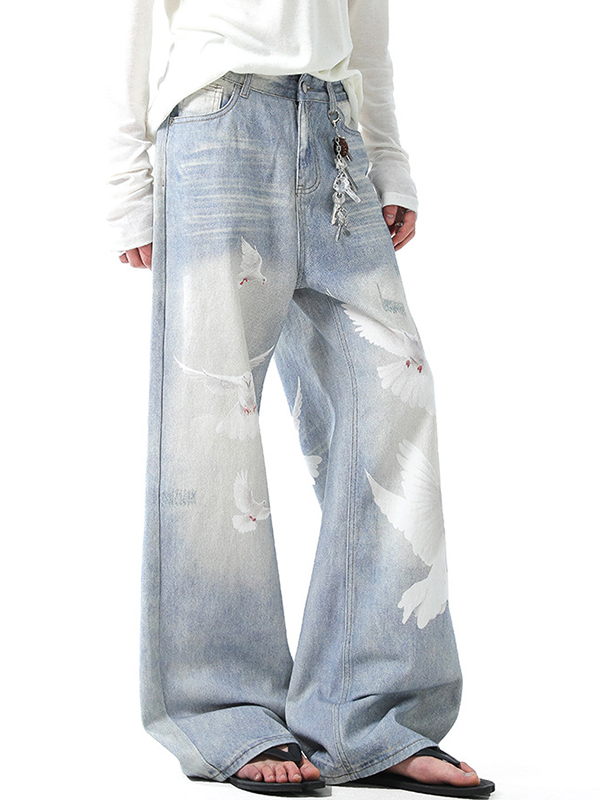 Verwaschene Boyfriendjeans mit „Dove Of Peace“-Design