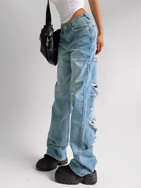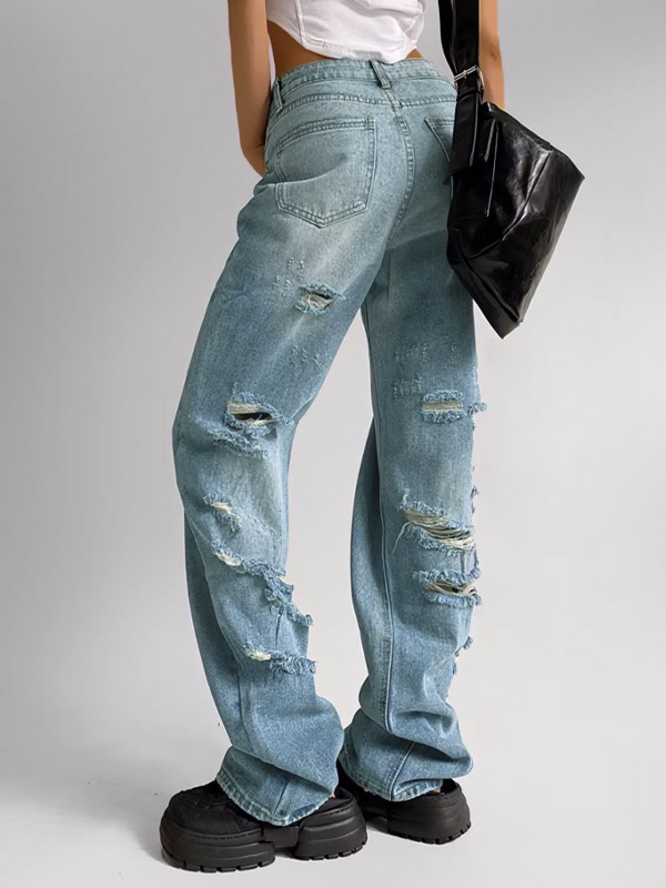 Verwaschene, zerrissene Boyfriend-Jeans im Used-Look