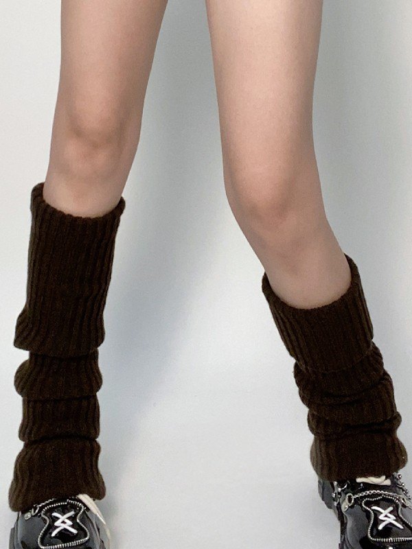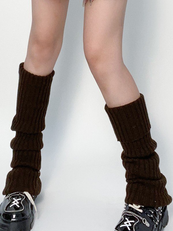 Warme, einfarbige, gerippte Strick-Beinwärmer