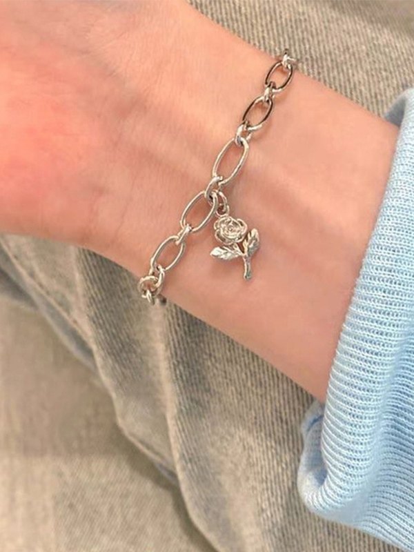 Verstellbares Gliederarmband mit Blumenanhänger aus Jadeimitat