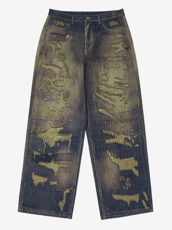 Vintage-Boyfriendjeans mit mehreren Taschen und Camouflage-Muster