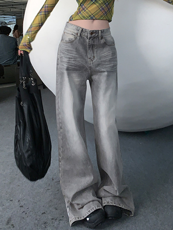 American Retro – Verwaschene Boyfriendjeans mit weitem Bein