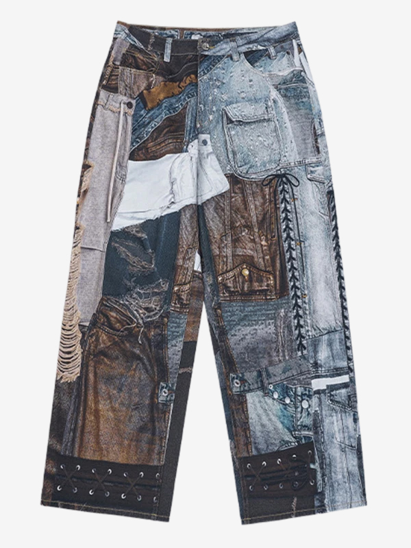 Schwere Jeans in Neutral mit Aufdruck und mehreren Patches