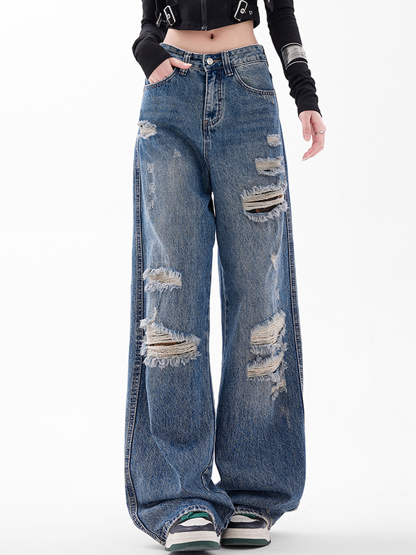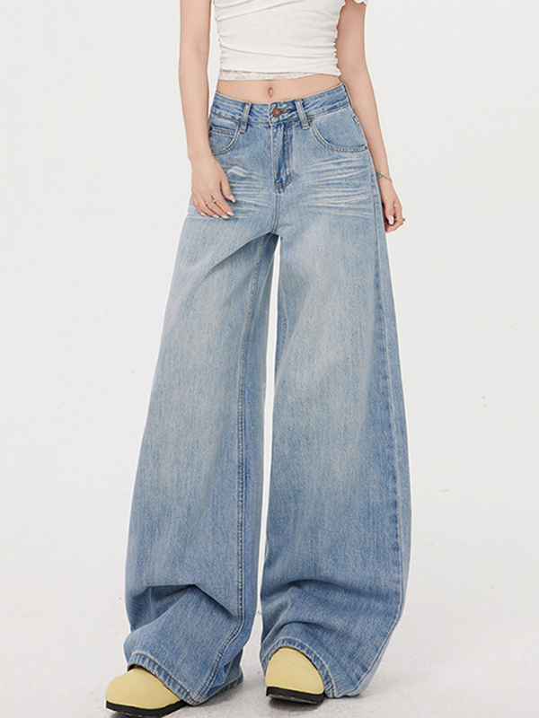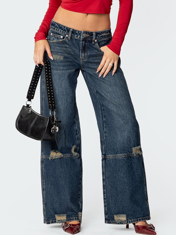 Verwaschene Jeans mit weitem Bein und Raw Edge-Details