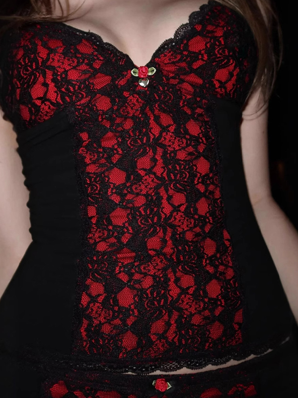 Camisole-Top mit Spitzen-Patchwork und Rüschen
