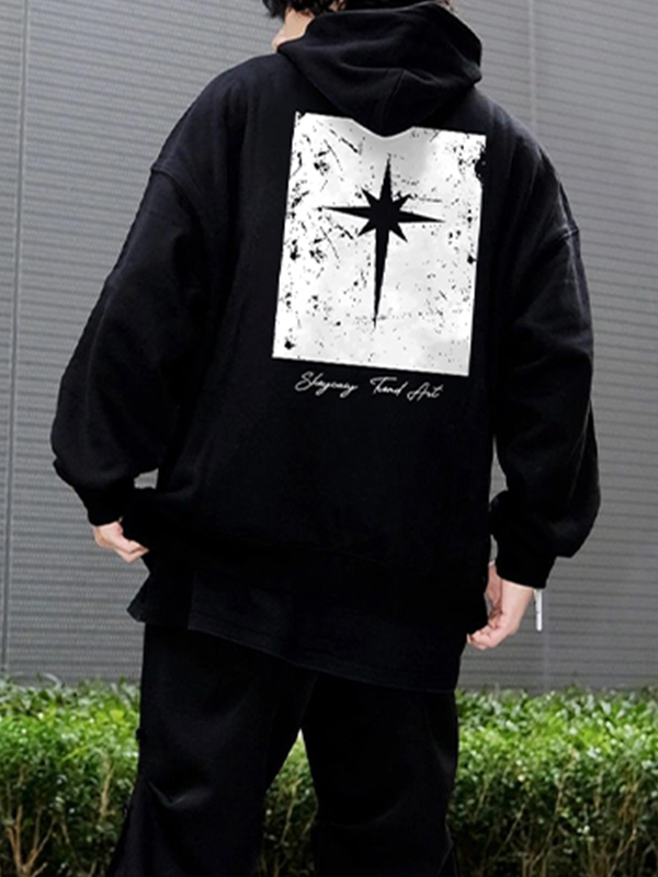 Übergroßer Kapuzenpullover mit Stern-Schriftzug und langen Ärmeln für Herren