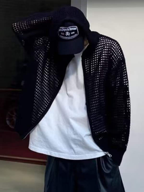 Übergroßer gestrickter Kapuzenpullover mit Cutout und Reißverschluss für Herren