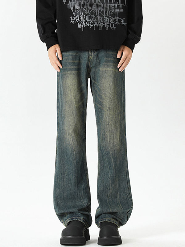 Lockere Jeans im American Retro-Look mit verwaschenen Katzenschnurrhaaren und leicht erhabener Waschung