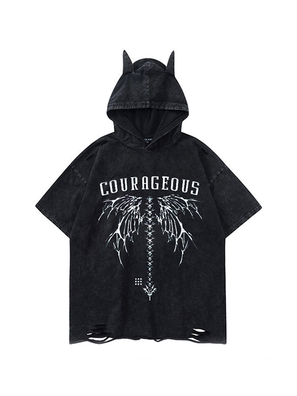 Übergroßer Kapuzenpullover mit Distressed-Butterfly-Print für Herren