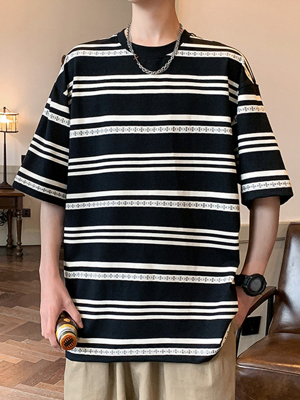 Übergroßes, kurzärmliges T-Shirt mit Street-Streifen-Print für Herren