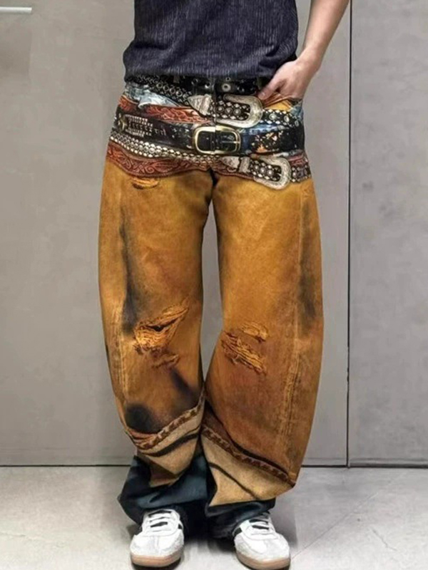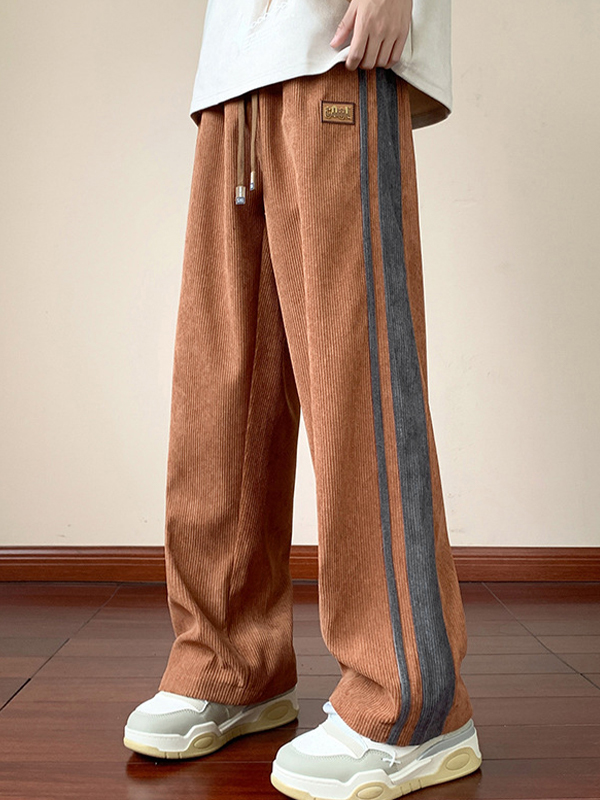 Herrenhose mit weitem Bein und kontrastierendem Paspeldetail und Kordelzug