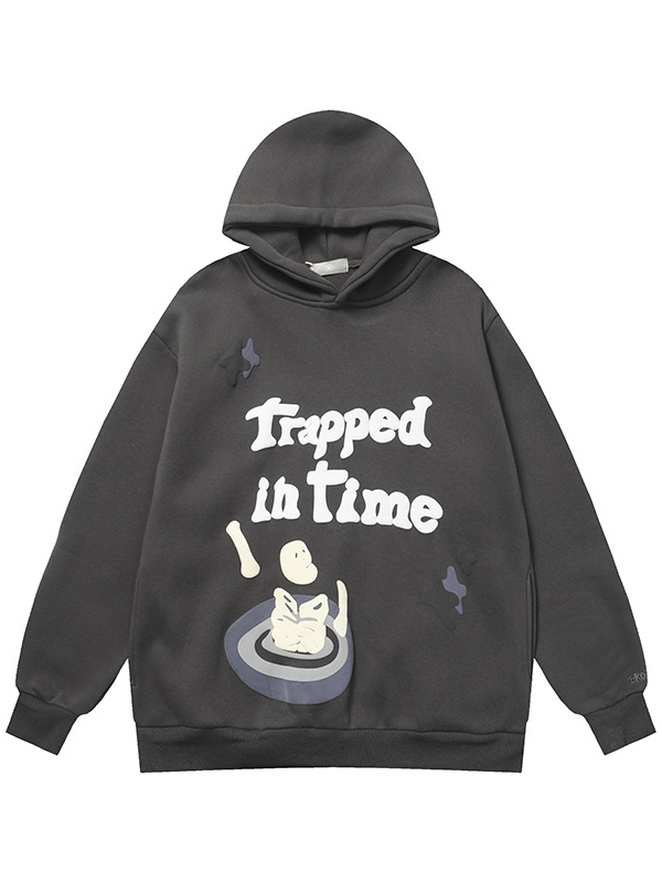 Übergroßer Langarm-Kapuzenpullover mit dunklem Totenkopf-Print für Herren