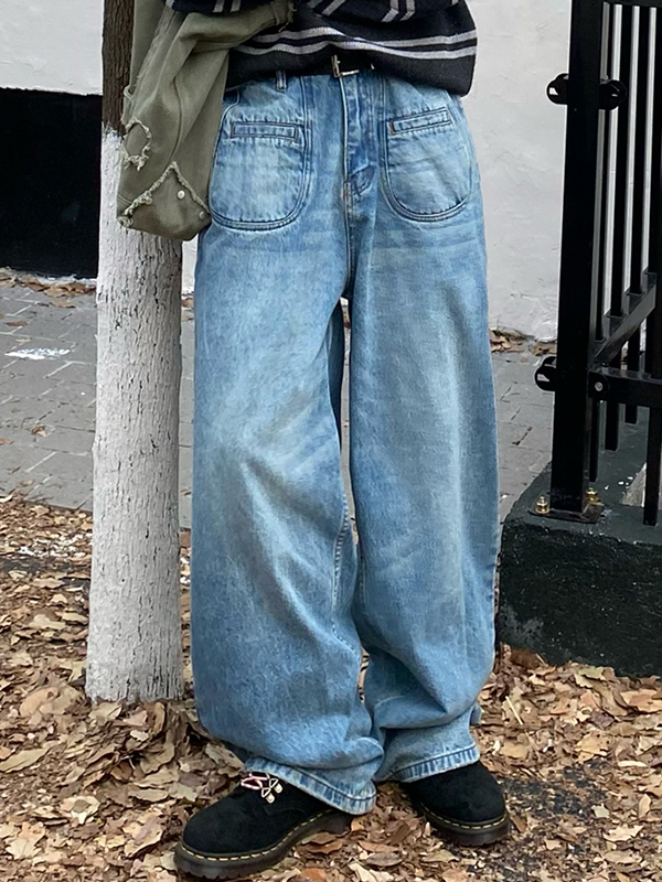 EMMIOL Herren-Jeans, Retro-Waschung, gerades Bein, 26 °C/78 °F, Air-Jeans