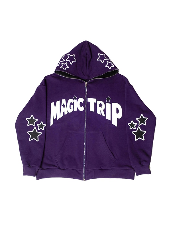 Übergroßer Kapuzenpullover für Herren mit Sternenmuster und Reißverschluss