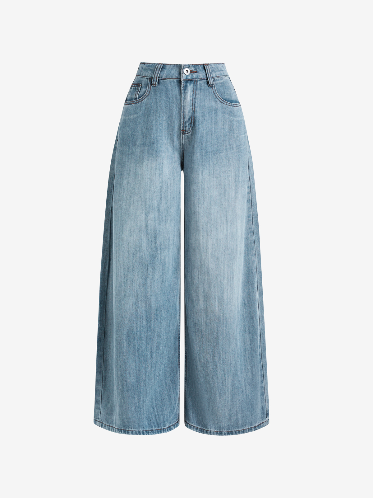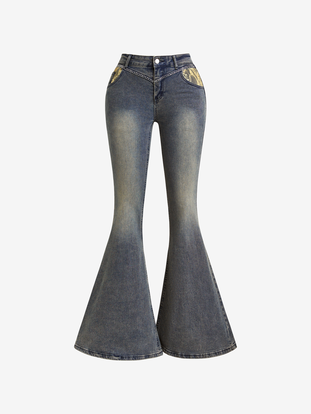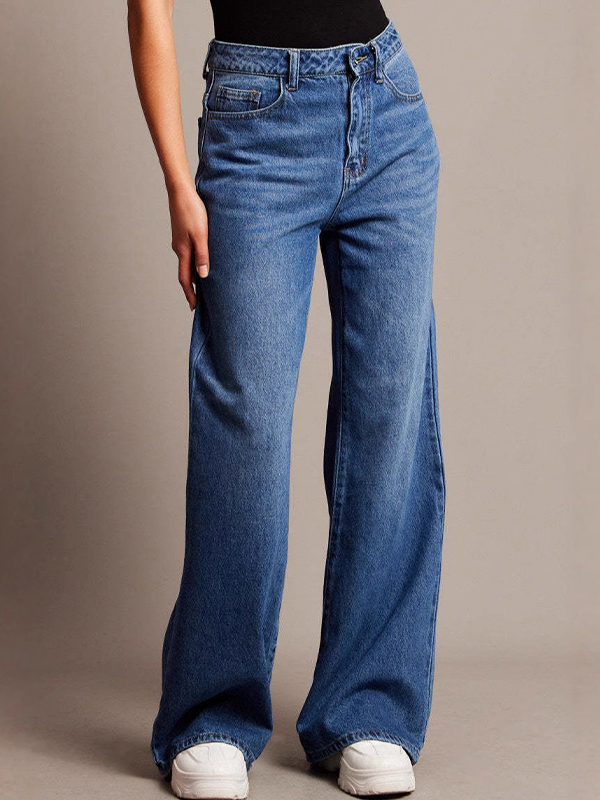 Schlagjeans mit zwei Knöpfen und bauchfreiem Bein