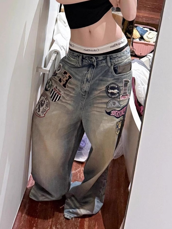 Boyfriendjeans mit Vintage-Gitarre und weitem Bein