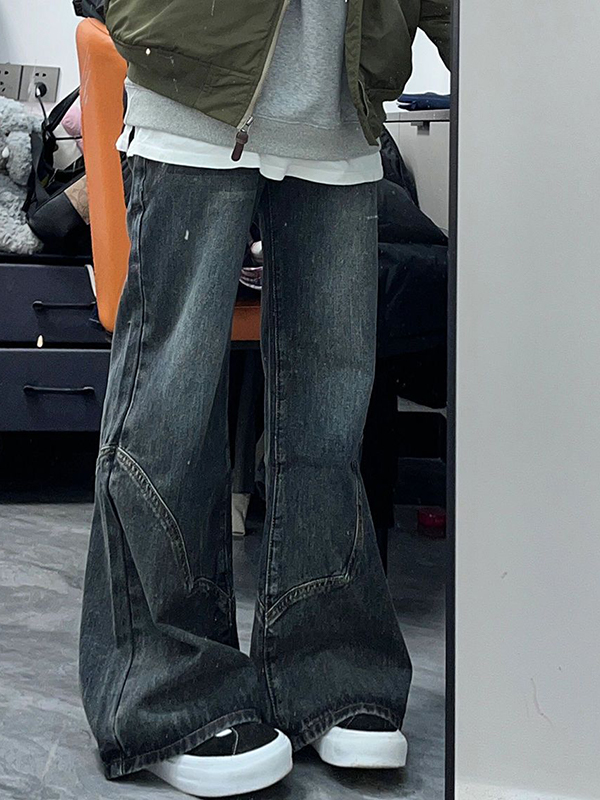 Japanische Retro-Jeans mit weitem Bein in Blau