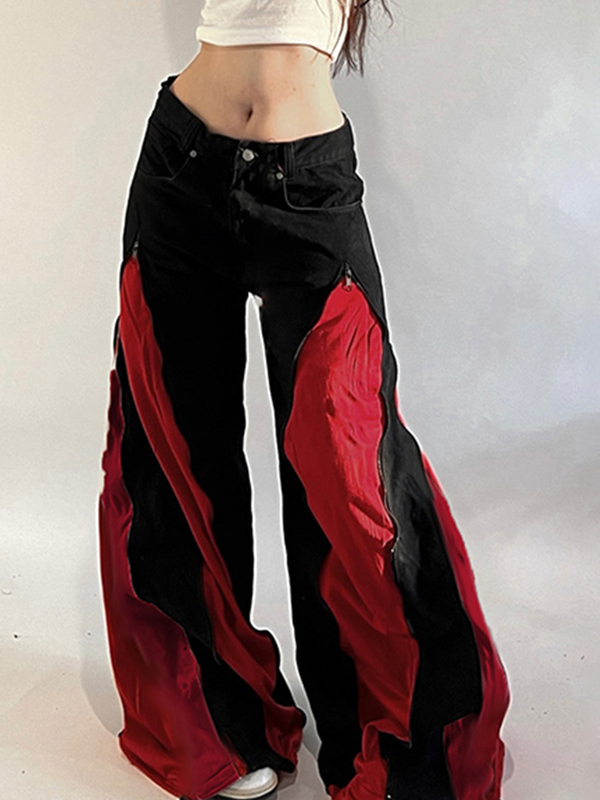 Boyfriendjeans mit Reißverschluss und Patchwork-Farbblockdesign