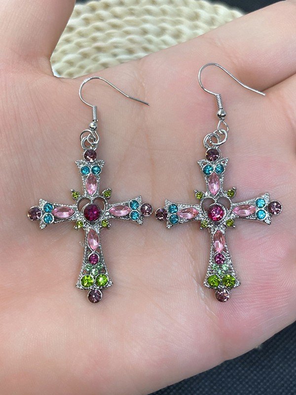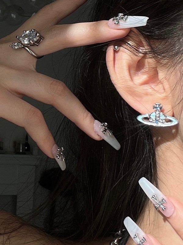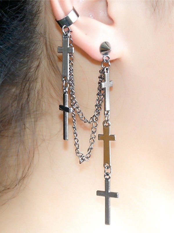 Punk-Ohrring mit Kreuz-Herz-Schleife, Charm-Kette und Manschette