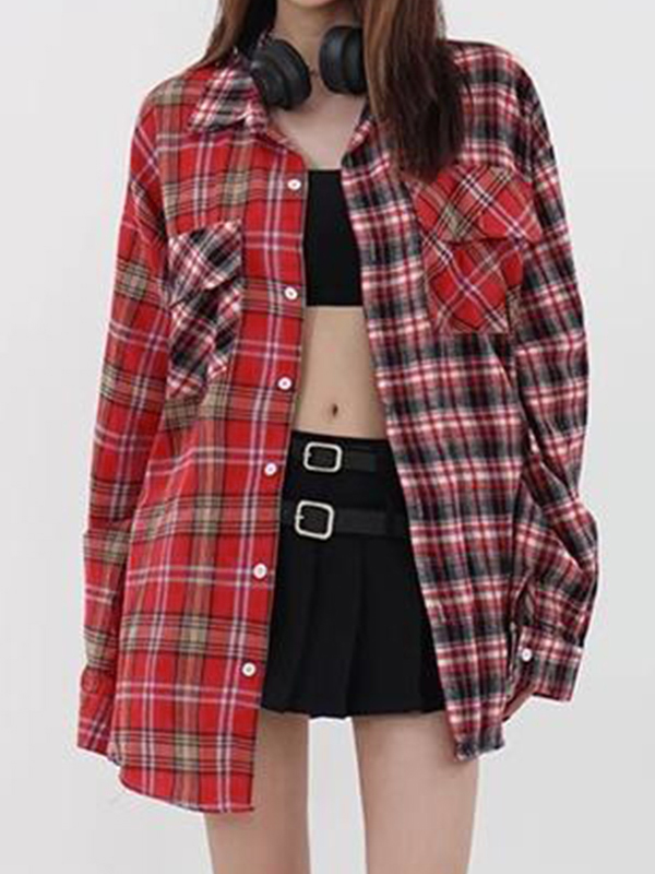 Vintage karierte Spleiß-Langarmbluse