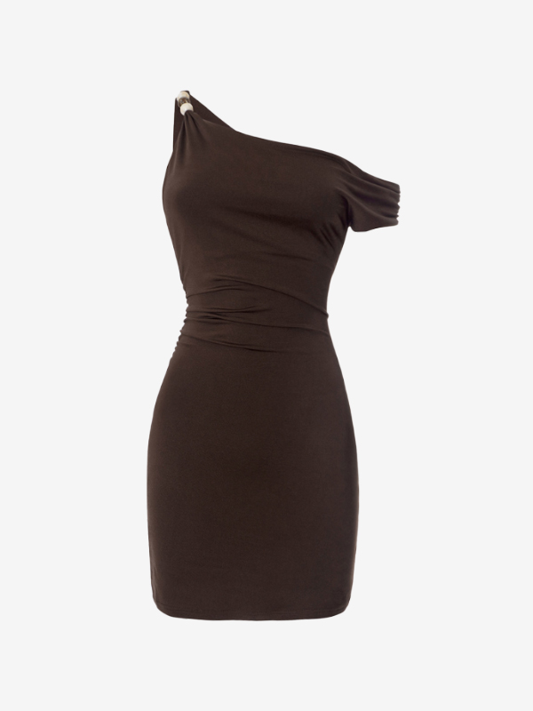 Einfarbiges Minikleid mit asymmetrischer Schulterpartie