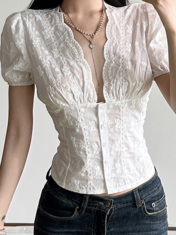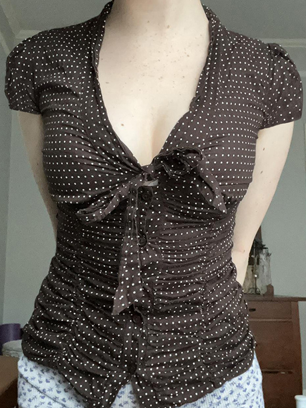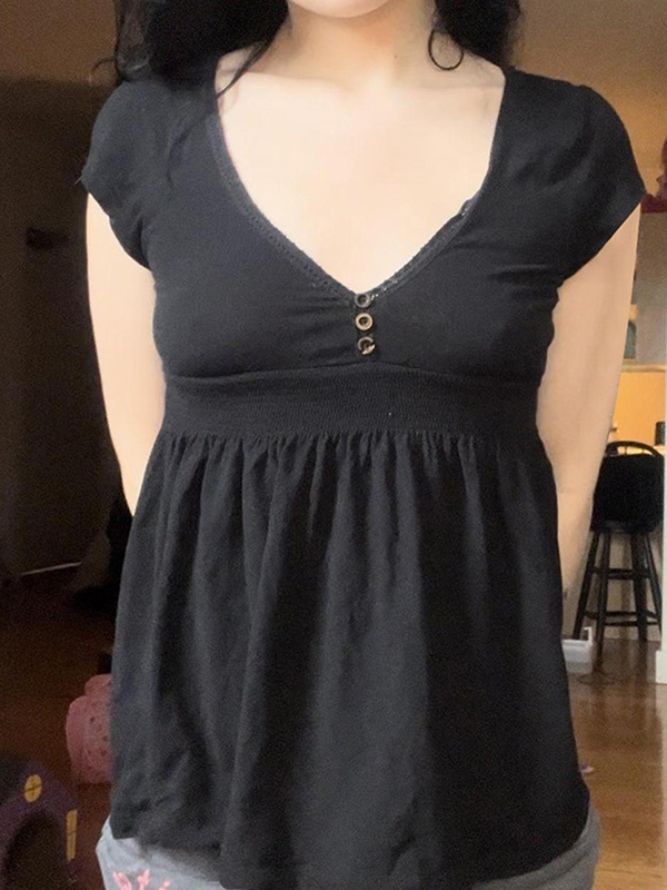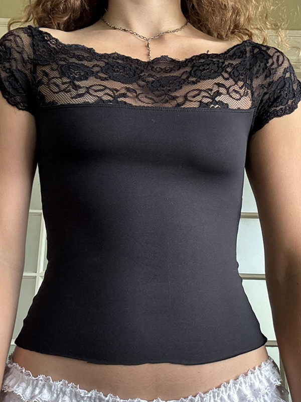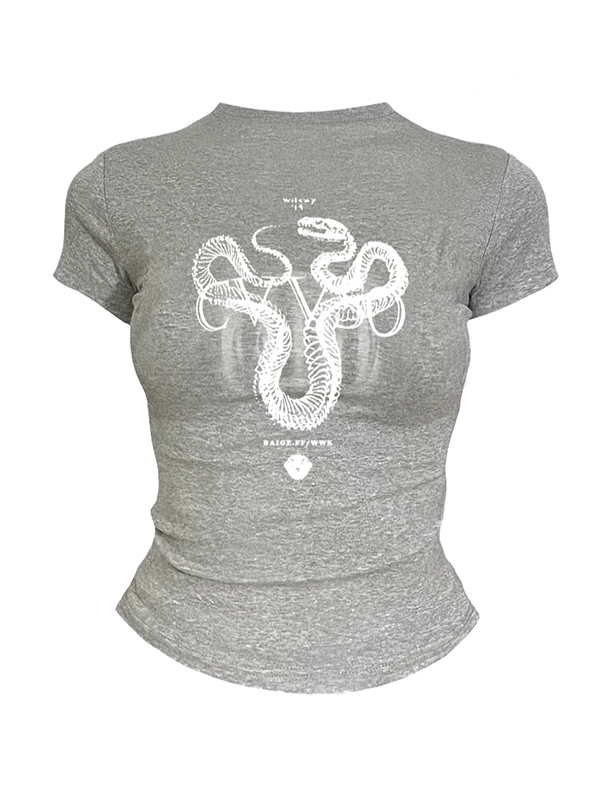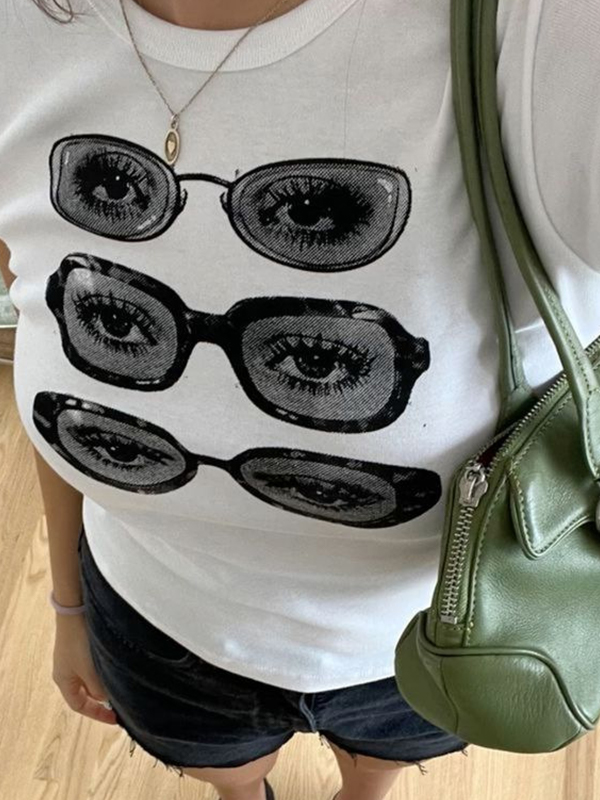 Lockeres T-Shirt mit dunklem Katzen-Print und perforiertem Rundhalsausschnitt