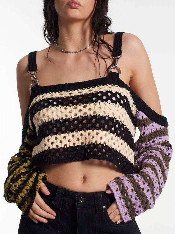 Häkeloberteil mit Ausschnitten in Kontrastfarbe, Spleiß und Schnallenriemen
