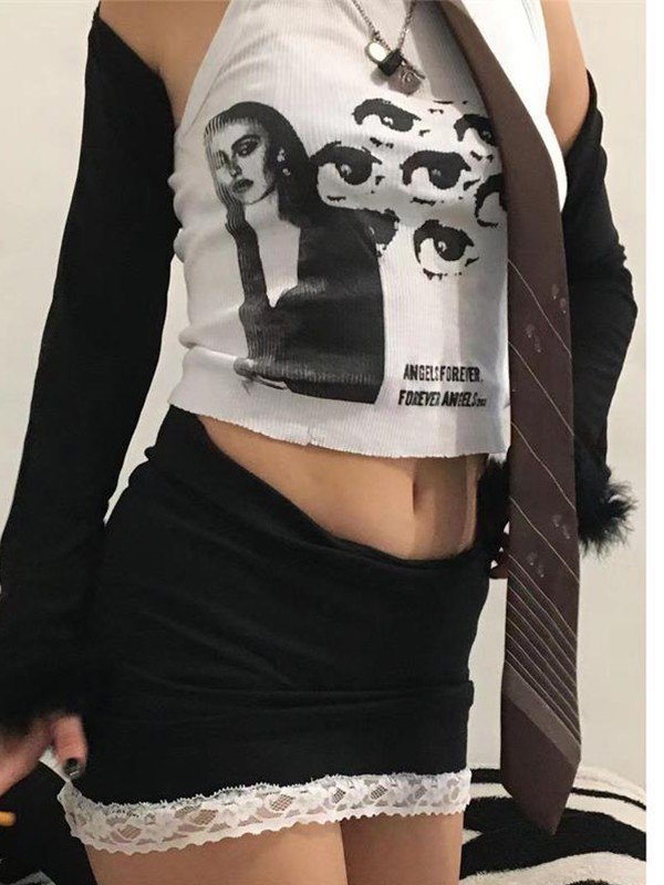 Unregelmäßiges Tanktop mit Spitzen-Patchwork-Schleife