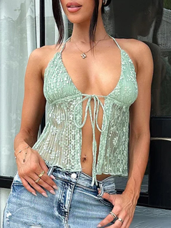 Unregelmäßiges Tanktop mit Spitzen-Patchwork-Schleife