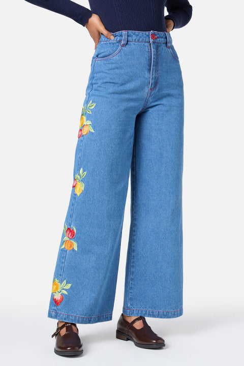 Fruktbroderade denimjeans