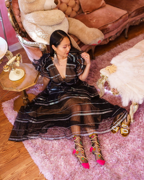 Pearls&Jewels Svarta Transparenta Ankelstrumpor