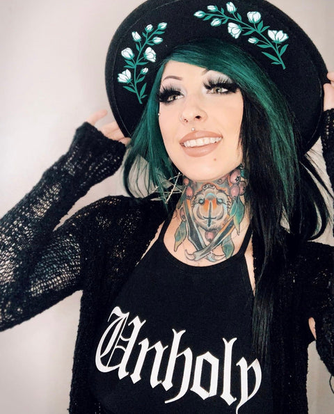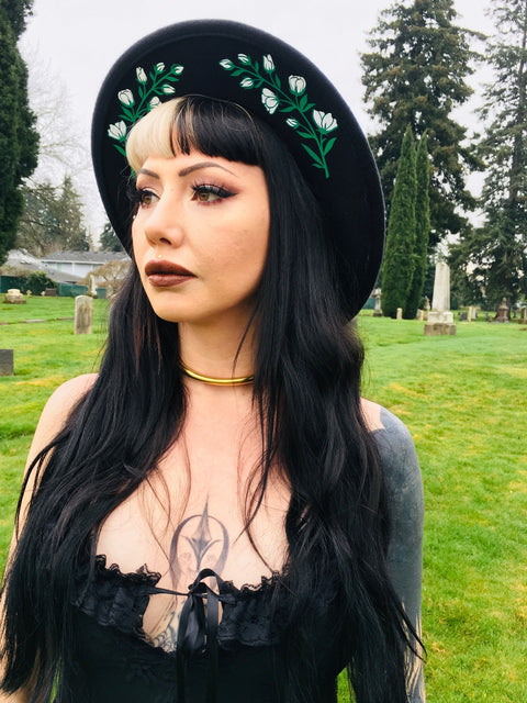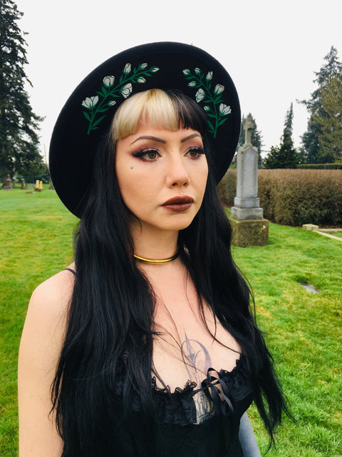 Vegansk Filthatt – Bred Brätte – Vit Blommig